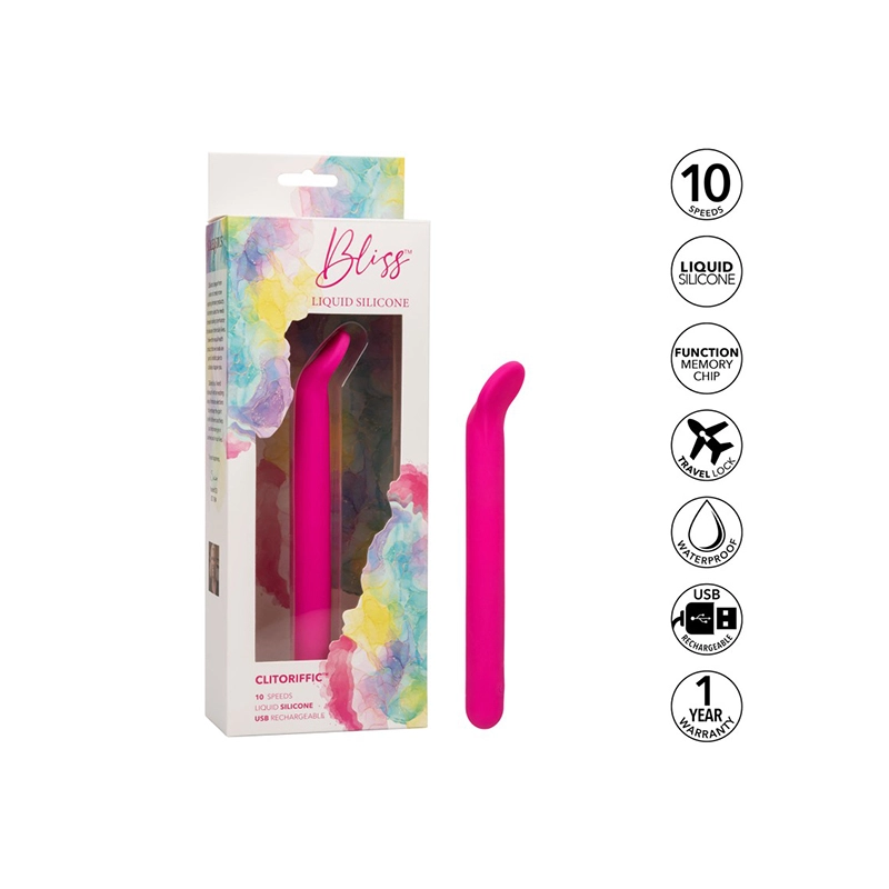 Geniet met de plagerige Liquid Silicone Bliss Clitoriffic. Deze sensationele vibe heeft een zachte punt met een ontwerp van zachte siliconen en 10 krachtige vibratiesnelheden.