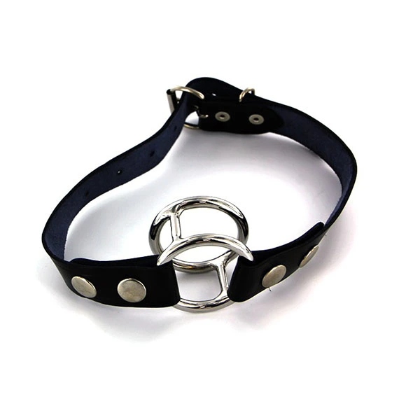 Extra diepgaande open mondknevel met een doorsnee van 40 mm van het merk Kiotos. De zwartlederen verstelbare band is afgemaakt met stoere studs en geschikt voor hem en haar.