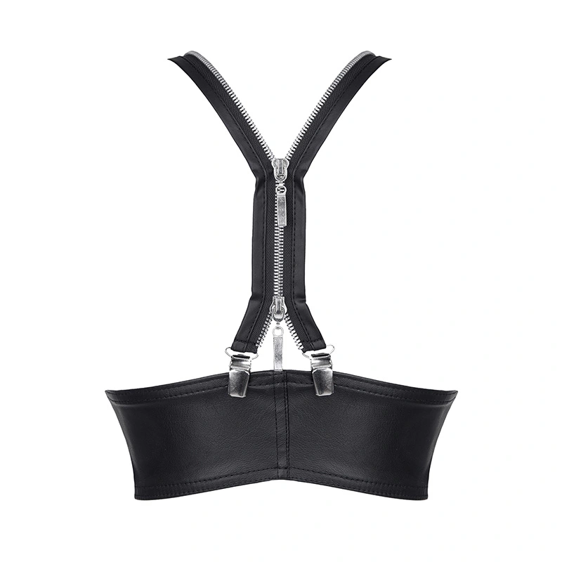 De draagoplossing voor deze imitatieleren Black top Zita van Demoniq is eindeloos. De Zita top wordt aan de voorkant gesloten met een ritssluiting en heeft clipsluitingen waarmee je de schouderbanden in elke positie kunt bevestigen.Β Of je het nu als ringertop of als strappy back draagt, dankzij de 2-way zipper is dit te verstellen zodat deze zeer comfortabel is om te dragen. De korte top heeft een diepe V-hals en omlijst je decolletΓ© perfect.Β Bijpassende broekjes uit de collectie vind je ook hier in de winkel.