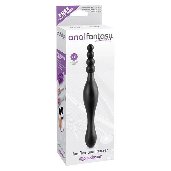 Optimaal gevarieerde anale prikkeling ervaar je met Anal Fantasy Fun Flex Anal Teazer. Deze dildo is aan beide kanten te gebruiken en door zijn beperkte afmeting ook geschikt voor beginners. Je kunt de anus stimuleren via een penetratie met de vier genotsknobbels, of het langgerekte kraalvormige uiteinde diep naar binnen brengen. Uitgevoerd in flexibel PVC geeft de Anal Fantasy Fun Flex Anal Teazer mannen en vrouwen de perfecte anale ervaring.