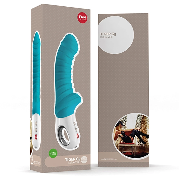 Met in totaal 12 vibratieprogramma’s is Fun Factory Tiger G5 Petrol het seksspeeltje dat je moet hebben Of dat nu solo is of met een partner. De ergonomische vorm met het gat in het handvat zorgt ervoor dat hij perfect in je hand past. Steek je wijsvinger door de zilveren ring in het verleidelijke handvat voor een stevige grip. Laat het speeltje in je handen rusten en de drie knoppen kunnen bediend worden met de duim. Navigeren is makkelijk met de + en – knoppen. De rode FUN knop start en stopt TIGER met 1 druk op de knop.