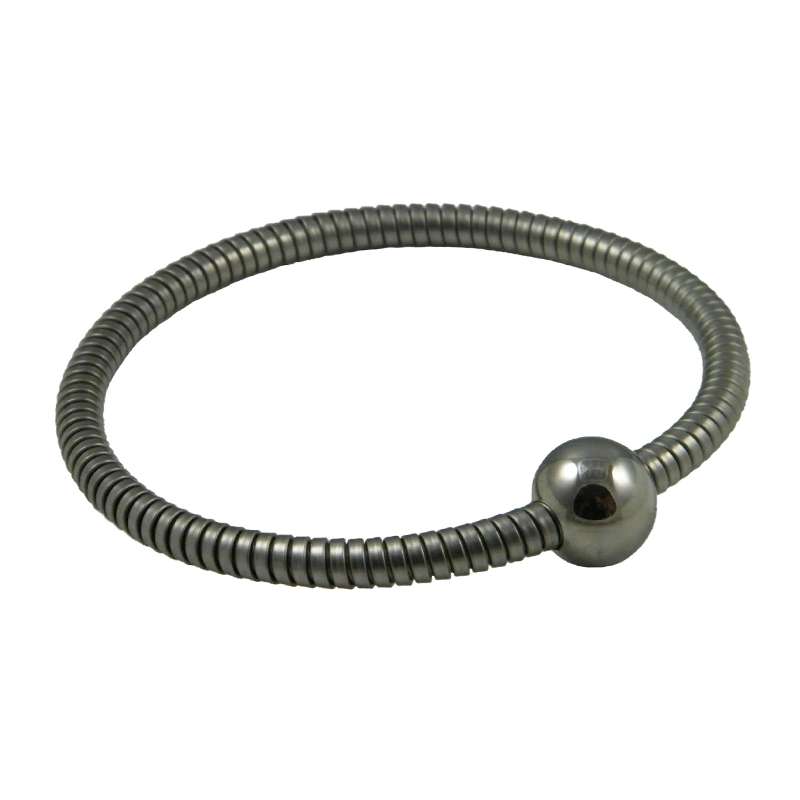 De halsband flexibel is gemaakt van roestvrij staal. Ook de bal sluiting is van massief roestvrij staal gemaakt en is van ca. 22 mm in diameter. Daar zitten twee magneetjes die de uiteinden van de flexibele halsband van ca. 9mm diameter met elkaar verbind. De halsband is verkrijgbaar in diverse maten.