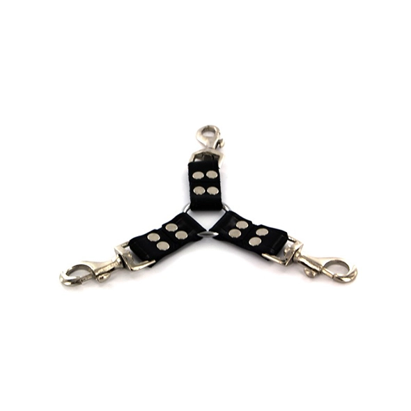 Oefen de volledige controle op hem of haar uit met dit hulpmiddel, waarmee je je sub met meerdere lichaamsdelen aan elkaar vast kunt binden. Afgewerkt met metalen studs.