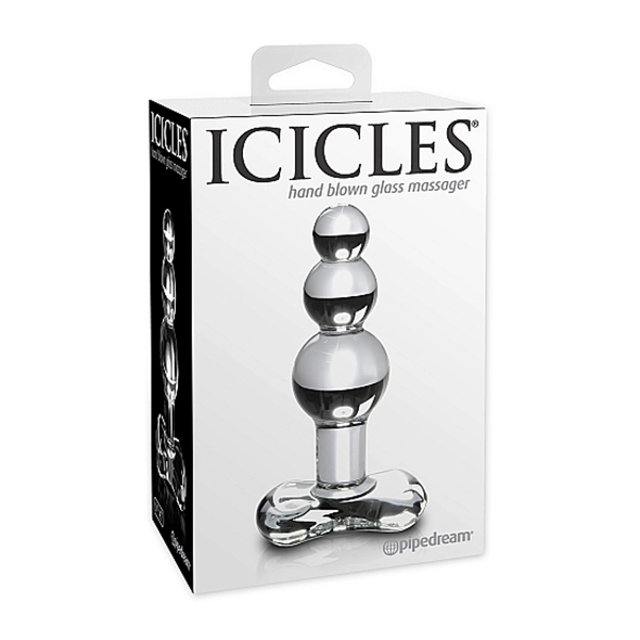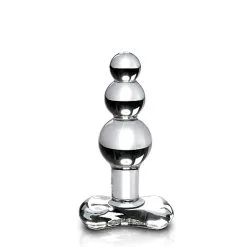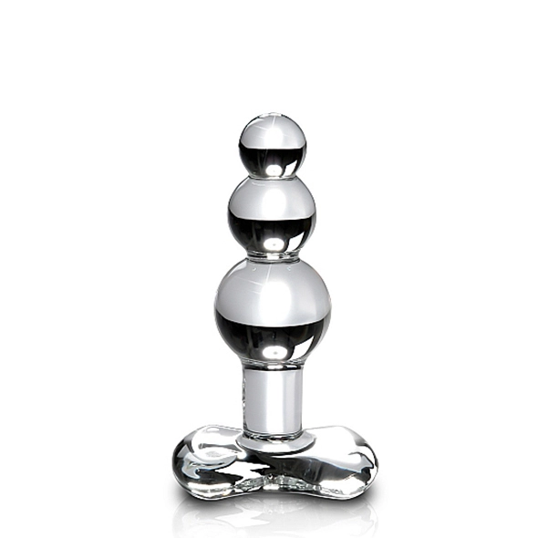 Glazen dildo welke met de hand is gemaakt. De dildo heeft drie bollen wat zorgt voor nog intensere stimulatie, zowel anaal als vaginaal. Met een kleine bol aan de top en de grootste bol aan het uiteinde. Met slanke hals waardoor de anaal plug goed blijft zitten. Het platte uiteinde zorgt voor veilig gebruik. Het glas is glad en voelt fijn aan op de huid. Gemakkelijk op te warmen of af te koelen met water.