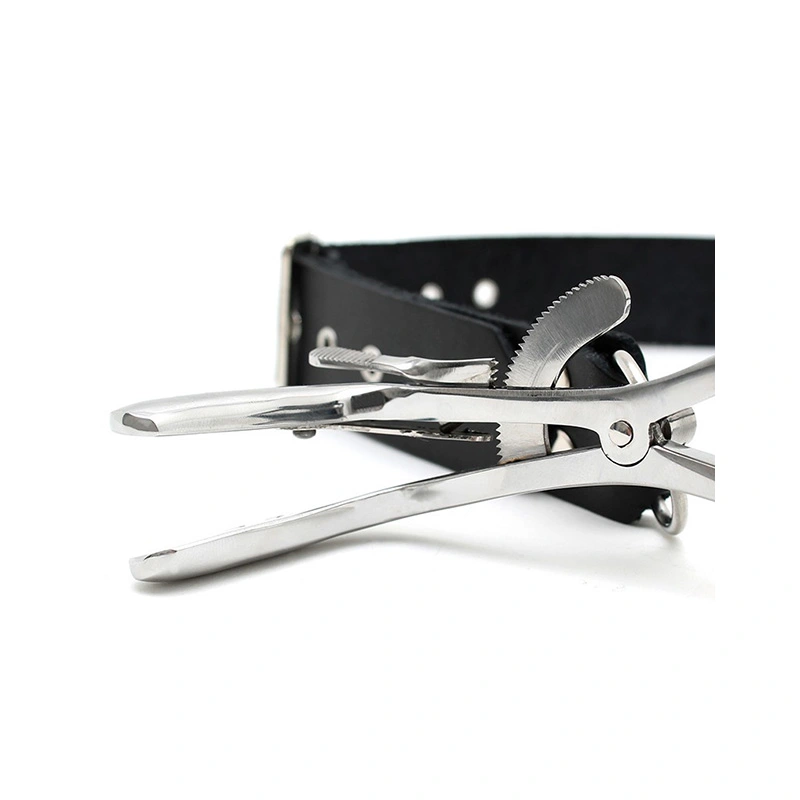 Deze Jennings mondklem is het perfecte attribuut om de mond zo wijd mogelijk open te houden als gewenst. De mondklem werkt op een ratelsysteem, waardoor deze eenvoudig versteld kan worden. De mondklem is gemaakt van roestvrij staal van medische kwaliteit en de verstelbare nekriem is gemaakt van echt leer.