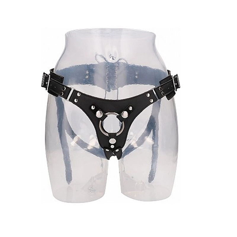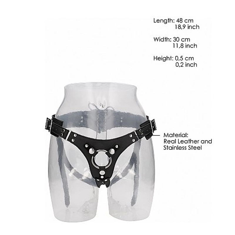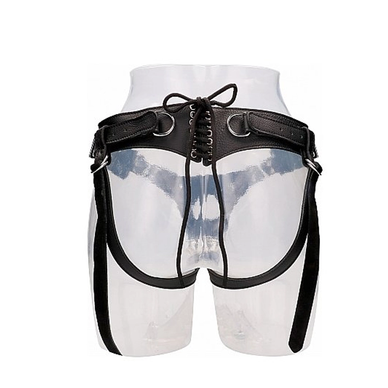 Met zijn leren bandjes met gemakkelijk te openen beugelsluitingen kunnen alle dildo’s tot een diameter van 3,8 cm worden aangepast. Dit prachtig vervaardigde harnas heeft modieuze lederen vetersluiting op de rug.