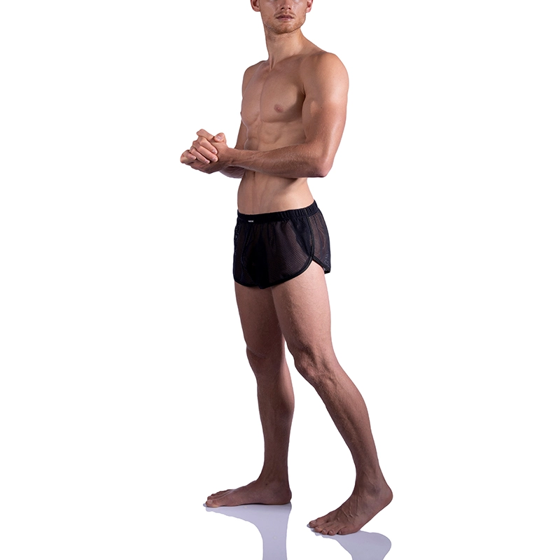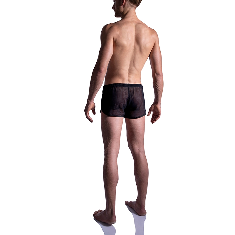 De sportieve MANSTORE M2181B Sprint Shorts in de kleuren zwart en wit transparant zijn verkrijgbaar in de maten S, M, L en XL .
