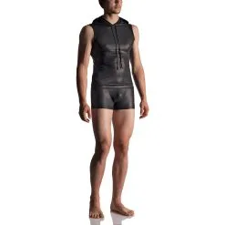 Manstore M510 Hoody Tank is een zijdemat wetlook. Het materiaal is een flinterdun met dubbel gestikte naden, capuchon met een trekkoord. De MANSTORE Hoody Tank M510 in zwart is verkrijgbaar in de maten S, M, L, XL en XXL. Het materiaal bestaat uit 92% polyamide en 8% elasthaan.