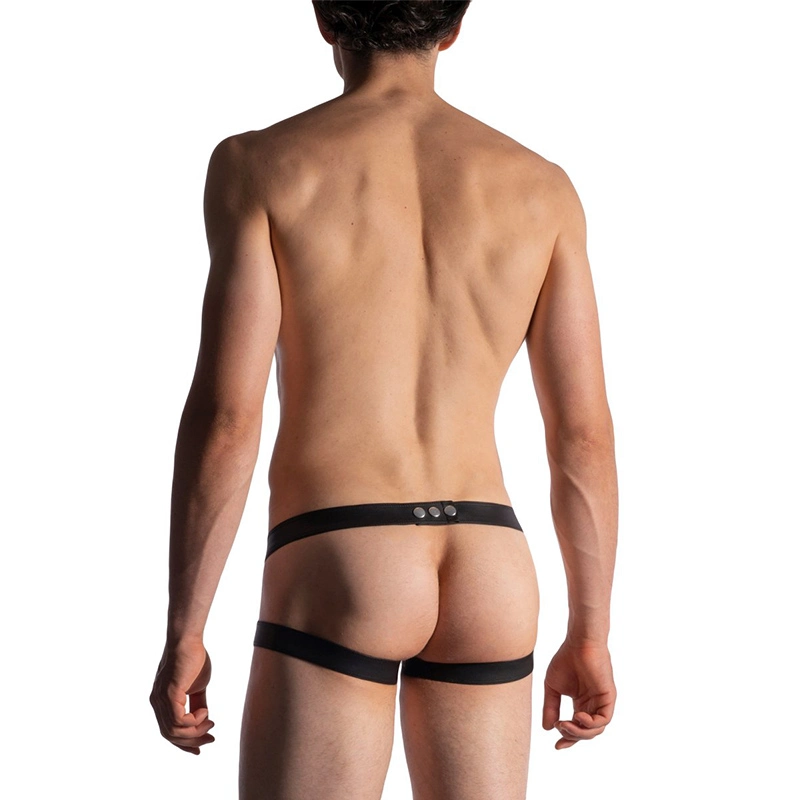 Deze zwarte fetish Jock Strap bestaat alleen maar uit 3 elastische banden en een stalen (cock) ring. Hij is volledig wasbaar en heeft de perfecte hoeveelheid stretch. Hij is daarom maar leverbaar in twee maten. S/M en L/XL.
