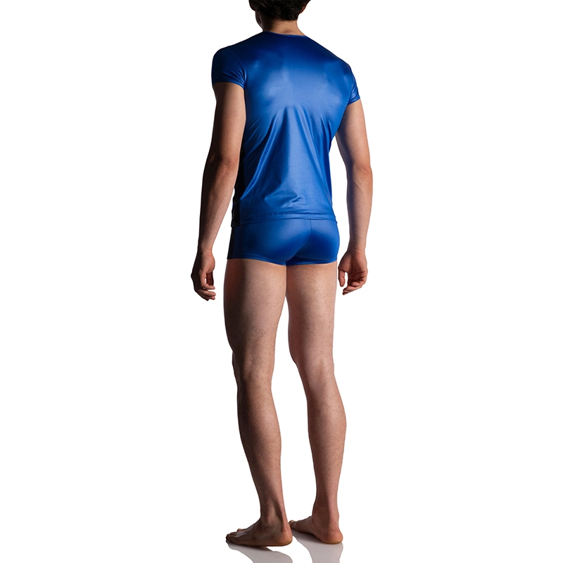 De kleur zelf van dit M951 Brando Shirt is al een blikvanger, want dit T-shirt uit de Manstore-serie M951 wordt geleverd in een opvallende oceaanblauw kleur. Het koele, gladde oppervlak van het super lichte en zeer elastische satijn glanst als zijde en laat de kleur echt stralen. Nauw aansluitend shirt met korte mouwen, een kleine V-hals en brede zwarte inzetstukken aan de zijkanten.