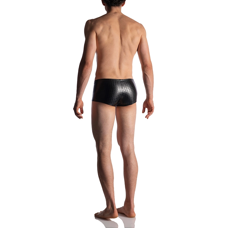 Het elastische kunstleer heeft een geometrisch reliëfoppervlak dat de broek accentueert met een extravagante look. Hip-cut pasvorm biedt een perfecte pasvorm en onderstreept het modieuze karakter. De jockstrap is onderscheidend. De broek kan aan de voorkant losgeknoopt worden. De M956-serie is ideaal voor fetisjfeestjes en clubbezoeken als trendy scene-outfit.