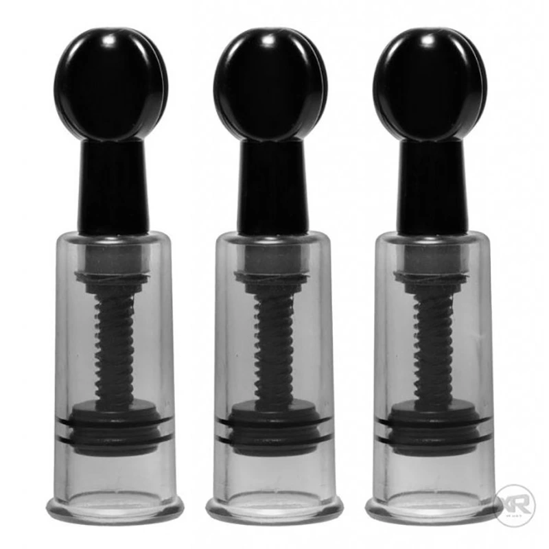 Deze eenvoudige set van 3 zuignappen helpt je de doorbloeding en gevoeligheid van aangebrachte gebieden (bijvoorbeeld tepels en clitoris) te vergroten. Er zijn geen pompen of extra accessoires nodig. Gewoon aanbrengen en aan de draaiknop draaien. Deze zuignappen zijn ook aan de binnenkant gesmeerd voor een sterke afdichting.