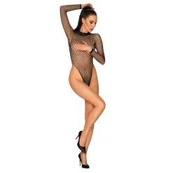 Adembenemende body van zacht en elastisch multi-stretch materiaal in zwart. Het grove mesh-materiaal past zich perfect aan je lichaam aan en is zeer slijtvast. De grote ronde halslijn op de rug maakt het plaatje helemaal af.