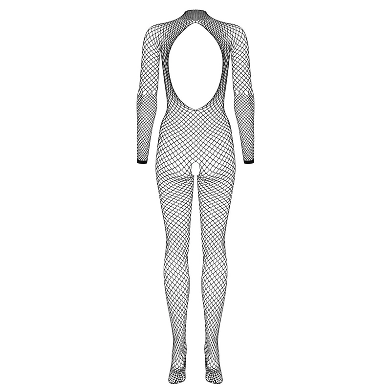 Sexy zwarte bodystocking van grof mesh materiaal. Met open kruis en ronde rug. Het hoogwaardige en comfortabele multi stretch materiaal past zich perfect aan je lichaam aan en is zeer slijtvast.