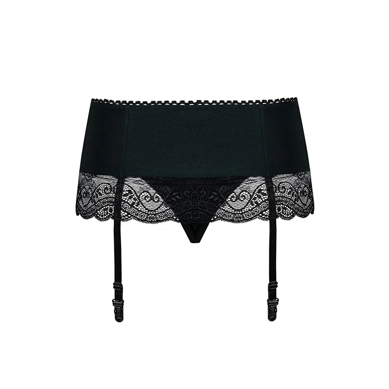 Elegante jarretelgordel van fijn, elastisch materiaal met kanten details. Met verstelbare bretels, inclusief zwarte string.