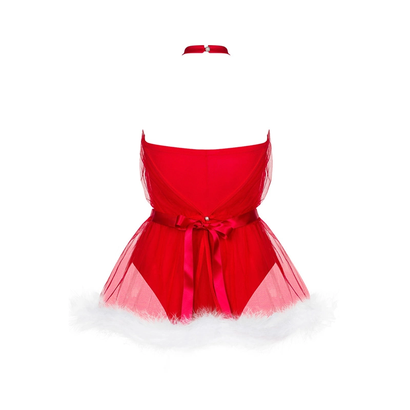 - Verleidelijk kerstkostuum versierd met witte franjes