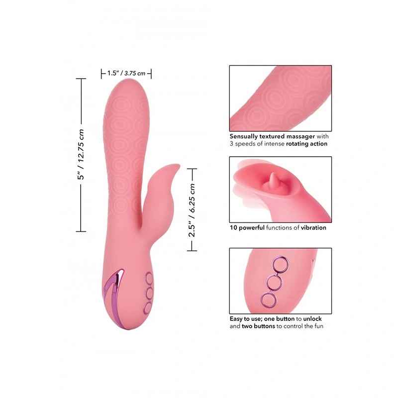 De Pasadena Player is een krachtige stimulator met 3 snelheden van een sensueel gestructureerde rabbit vibrator. Hij heeft 10 functies van vibratie, pulsatie en escalatie. Gemaakt van Lichaamsveilig Silicone. De State-of-the-art geheugenchip hervat zijn laatst gebruikte functie. Gemakkelijke drukknopbediening met veiligheidsvergrendeling. USB oplaadbaar β inclusief oplaadsnoer. Volledige opgeladen binnen 2,5 uur. Werkt ongeveer 35 minuten op hoge snelheid en ongeveer 2 uur op de minimale snelheid.