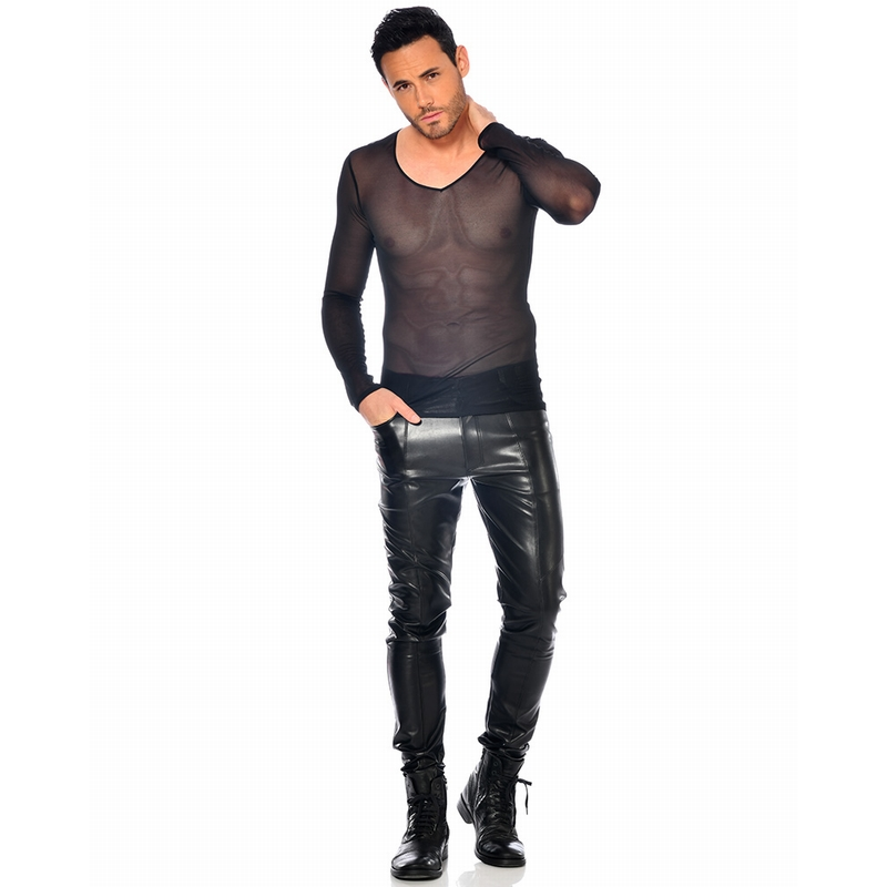 Lannister T-Shirt van Patrice Catanzaro met lange mouwen van hoogwaardig transparant zwart gaas. Dit T-shirt zit strak om het lichaam met een lage V-hals.