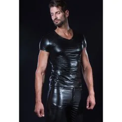 Het Matis T shirt in wetlook stof van Patrice Catanzaro sluit als een tweede huid om je lijf. Erg leuk detail is het borstzakje met rits.