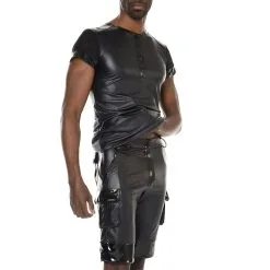 Tom T-shirt uit de Collectie Homme 4 van Patrice Catanzaro. Is een zwart wetlook T-shirt met lycra mouwtjes. Afgewerkt met lak accenten op de hals, schouders, rits en mouwen.