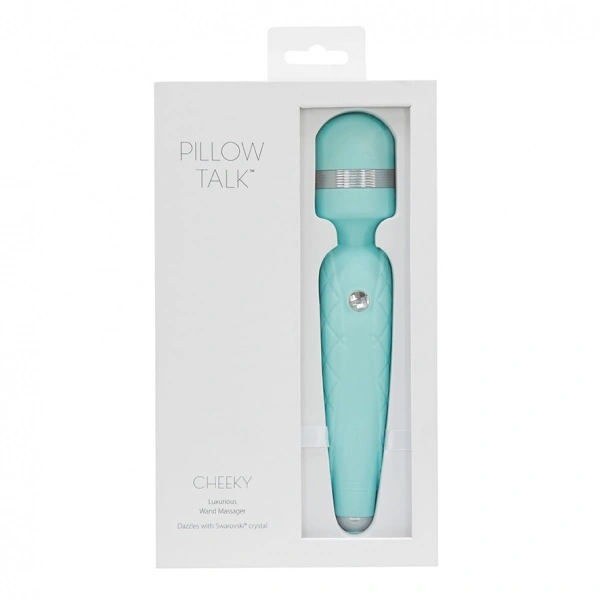 Pillow Talk Cheeky Mint is een trillende wand vibrator met diepe, krachtige vibraties, aangedreven door PowerBullet-technologie. De Pillow Talk Cheeky is ontworpen met eenvoudige elegantie en een Swarovski-kristal button en heeft een zijdeachtige siliconenafwerking en een incrementele snelheidsregeling voor nauwkeurig vermogen. Met de oplaadbare batterij en het meegeleverde USB-laadsnoer is Pillow Talk altijd klaar voor gebruik.