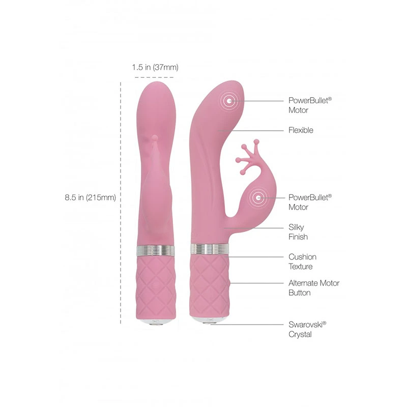 Kinky Clitoral Vibrator heeft een flexibele clitorale arm met een kroonachtige uiteinden. De elegant gebogen vibrator richt zich perfect op de G-spot, met sierlijk gevormde lijnen aan weerszijden van de schacht voor extra stimulatie. De kussen textuur op het handvat zorgt voor een comfortabele grip, terwijl het oogverblindende Swarovski®-kristal het sieraad is op de kroon van deze luxe stimulator. • Twee vibrerende motoren • Super zachte hoogwaardige siliconen afwerking • Diepe en stille PowerBullet®-vibraties • Ontworpen met eenvoudige elegantie voor uw plezier • Incrementele snelheidsregeling voor nauwkeurig vermogen • Oplaadbaar voor draadloos spelen.