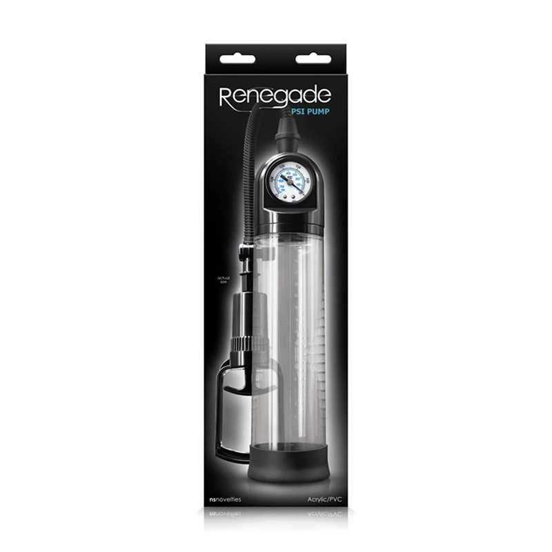 De Renegade PSI Penispomp is een krachtige penispomp met ingebouwde manometer. Ontworpen om erecties te vergroten met een superieure zuigkracht en is perfect geschikt voor zowel beginnende als ervaren gebruikers. De PSI Pump is gemakkelijk te bedienen met een triggerhendel, zodat de zuigkracht naar eigen voorkeur geregeld kan worden. De pomp wordt geleverd met een zachte sleeve. Gemaakt van PVC Plastic en TPE, volledig lichaamsveilig en comfortabel in gebruik.