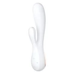 De Satisfyer Mono Flex Vibrator Wit Is een heerlijke G-Spot vibrator. Deze luxe vibrator heeft 2 motoren en deze kun je apart bedienen. De flexibele top weet moeiteloos jouw G-spot te vinden en de aparte bunny stimulator focust zich helemaal op jouw clitoris. Door het siliconen materiaal voelt deze vibrator heerlijk zacht aan en ligt hij comfortabel in de hand. De Mono Flex heeft standaard 5 vibratiestanden. Bovendien koppel je deze toy makkelijk aan de gratis Satisfyer app waarmee je zelf jouw eigen vibraties en patronen kunt creëren zodat deze toy altijd is ingesteld op jouw persoonlijke behoefte!