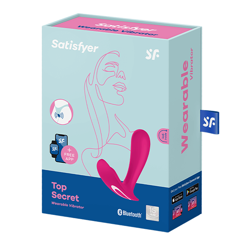 Top Secret stimuleert de G-spot met zijn gebogen, volumineuze schacht en intense vibraties. De draagbare vibrator heeft een vlakke, ergonomische basis die zorgt voor maximaal comfort. De schacht heeft een maximale diameter van 3 cm. De diepe, krachtige vibraties van de schacht kunnen worden bediend via het bedieningspaneel op de vibrator of via de Satisfyer app. Top Secret heeft een stille motor, is ontworpen om discreet in de vagina te passen en kan door iemand anders worden bediend: dit maakt de vibrator perfect voor degenen die playtime naar een hoger (meer openbaar) niveau willen tillen.
