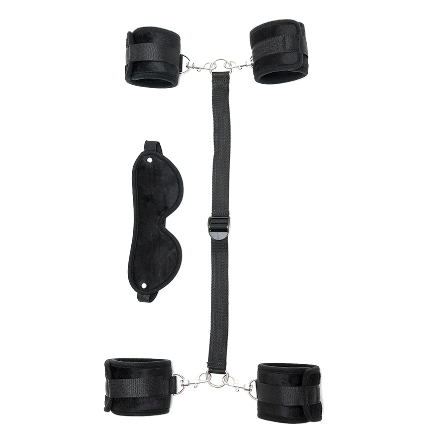 Soft bondage set 10 delig bestaande uit: Blinddoek + Handboeien + voetvoetboeien + band + 4 Karabijnhaken.