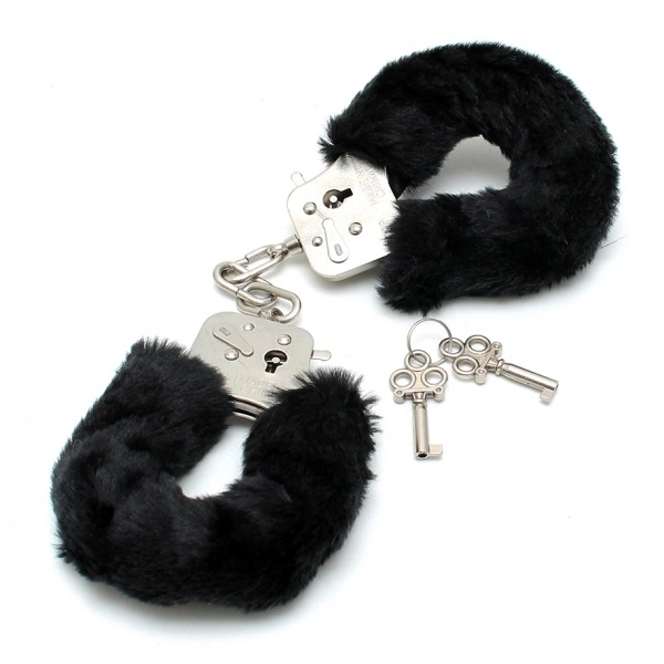 Stalen Handboeien met zwart bont.