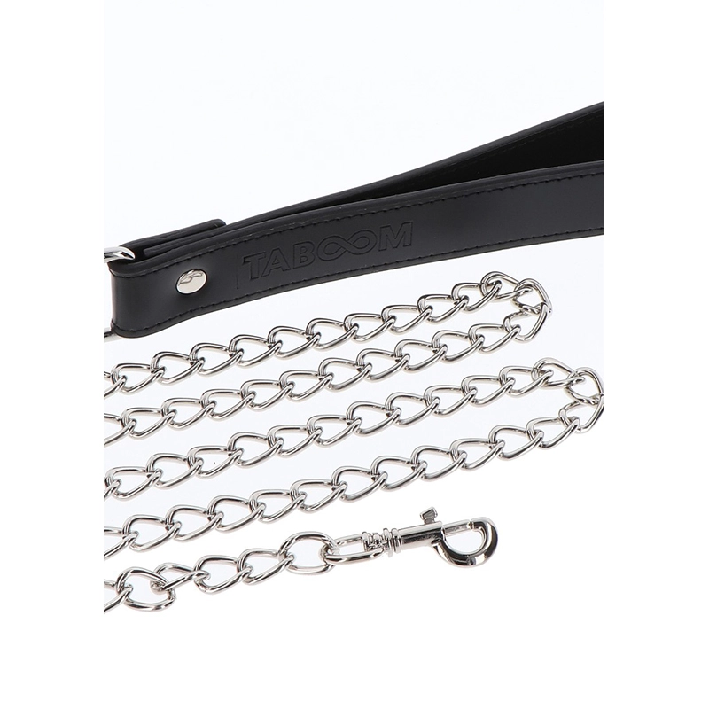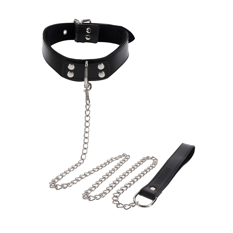 Ontdek je kinky kant met deze Elegant Collar and Chain Leash in de slaapkamer, hotelkamer of kinky club. De gebruiksvriendelijke O-Ring Halsband & Ketting zijn gemaakt van hoogwaardige materialen en zijn perfect voor een goede BDSM-sessie. Of draag het als een sexy fashion statement. Maak je klaar voor een luxe bondage-ervaring met de vegan lederen TABOOM O-ring halsband en ketting.