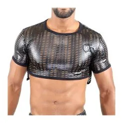 Deze crop top is een zeer trendy en sexy designer kledingstuk. De Centurion crop top is gemaakt van hoogwaardig geperforeerd imitatieleer. Twee zijsplitten bieden zowel comfort als stijl.