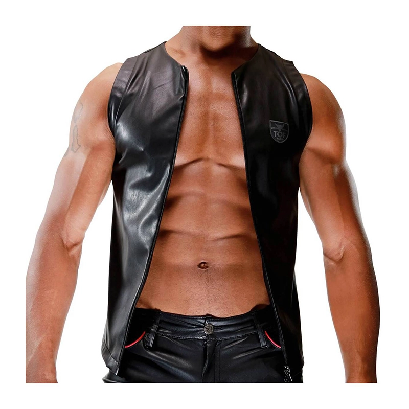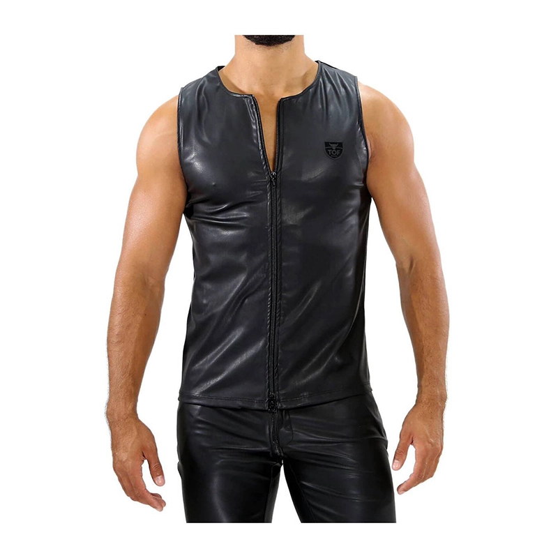 Deze chique Zipped tank top in fetisjstijl van Tof-Paris met rits is ultra-sexy. Hij is gemaakt van imitatieleer. De hoge kwaliteit maakt het verschil op het eerste gezicht bijna onmerkbaar.