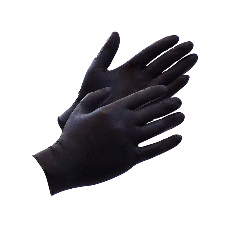 Zwarte Latex poeder vrij niet steriele wegwerp handschoenen ca. 240mm lengte, licht-schurend getextureerd oppervlak, externe polymeer coating, AQL 1.5, CE-standaard – geschikt voor medicinaal gebruik volgens DIN EN 455
